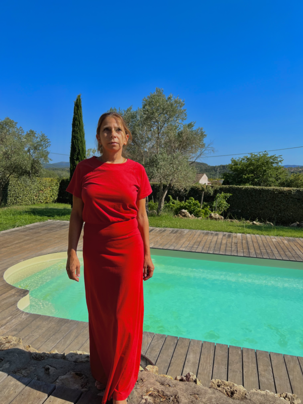 La robe LAVANDE ou le tee-shirt sont des modèles pour tissu maille avec de l’élasticité. Le patron offre une multitude de possibilités, une version robe longueur midi ou maxi, manches longues ou courtes, dos plein ou pour plus de féminité un joli dos nu et une version tee-shirt avec les mêmes possibilités que pour la robe.
